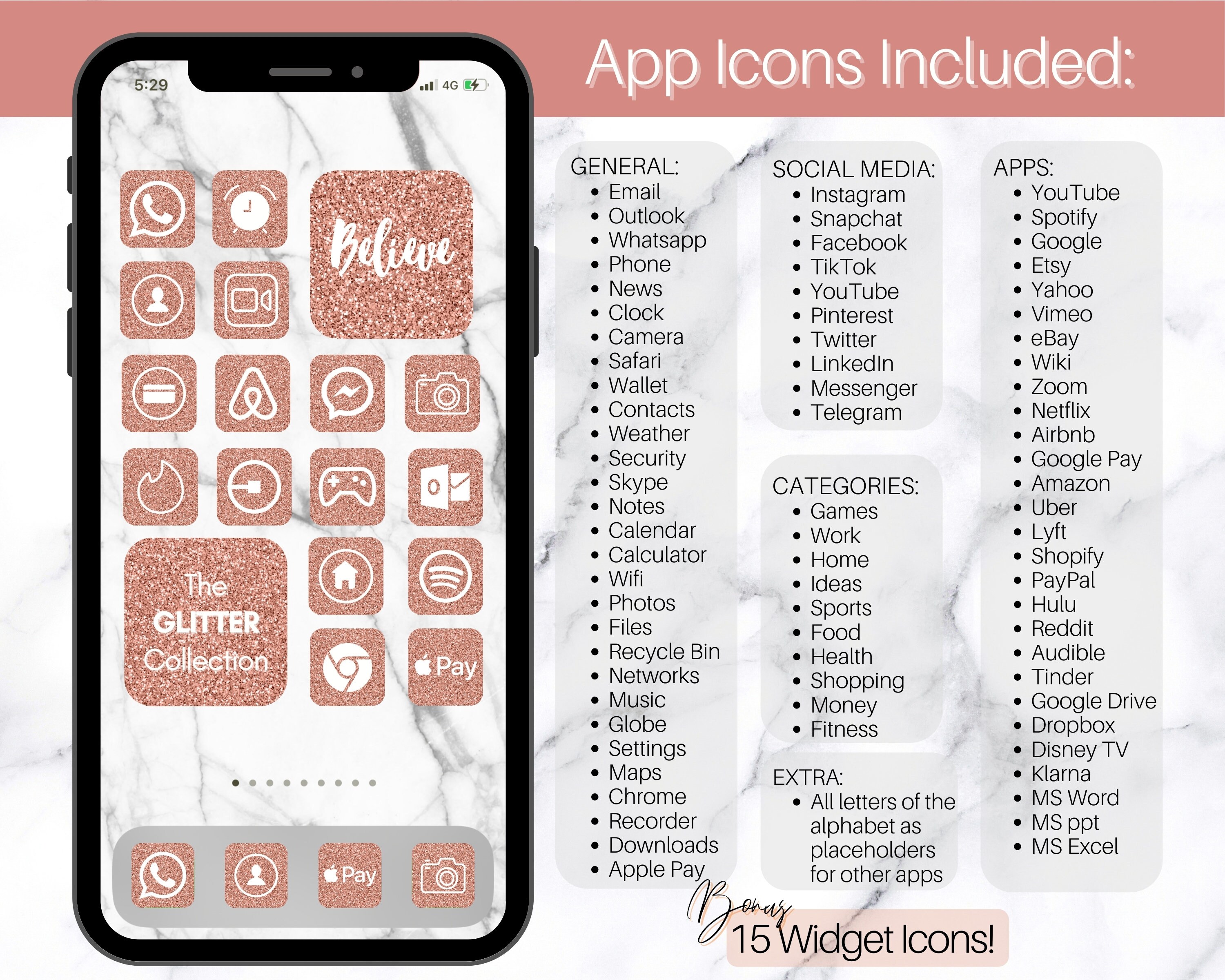 Glitter Aesthetic Ios 14 App Icons 135 Pink Rose Gold Theme Etsy
